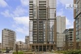 The bespoke kitchen includes Smeg integrated appliances, composite stone worktops, and modern cabinetry. Residents benefit from exclusive access to a business centre, boardroom, library, cinema room, plus 24-hour concierge and porter services.